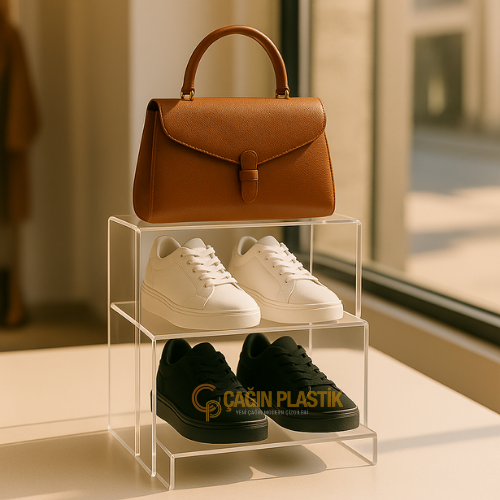 - 3'lü Merdiven Seti ürünümüz ayakkabılarınızı ve ürünlerinizi sergilemeniz için şık bir sunum ürünüdür.