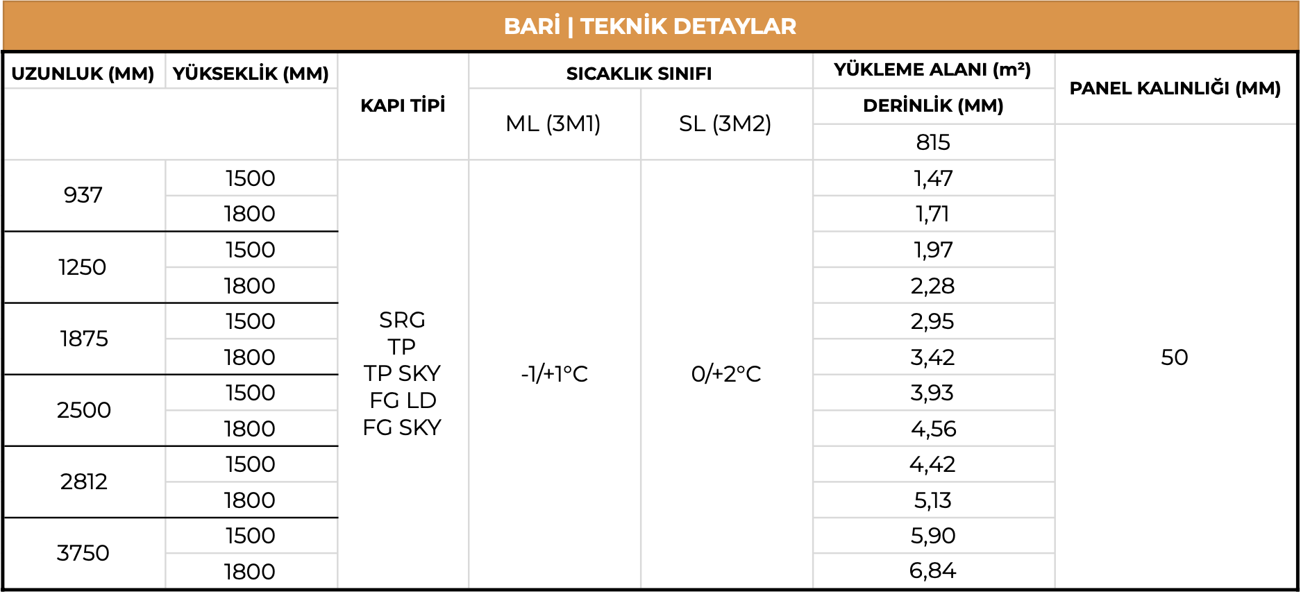 - 50 mm yan panel kalınlığı.