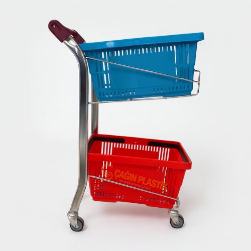 - İkili Metal Sepet Standları marketler, yapı marketler ve depolama tesisleri gibi perakende ürün taşımak için kullanılan tekerlekli arabalardır.