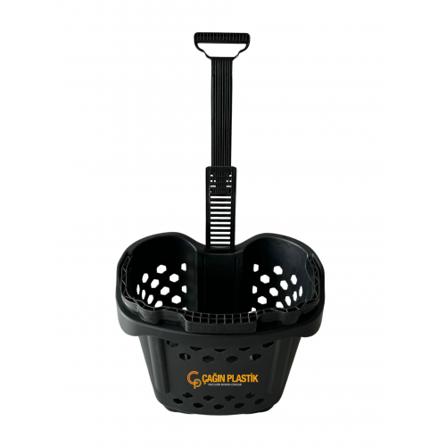 Tekerlekli Plastik Alışveriş Sepeti - Siyah | 40 Litre - 5 Adet